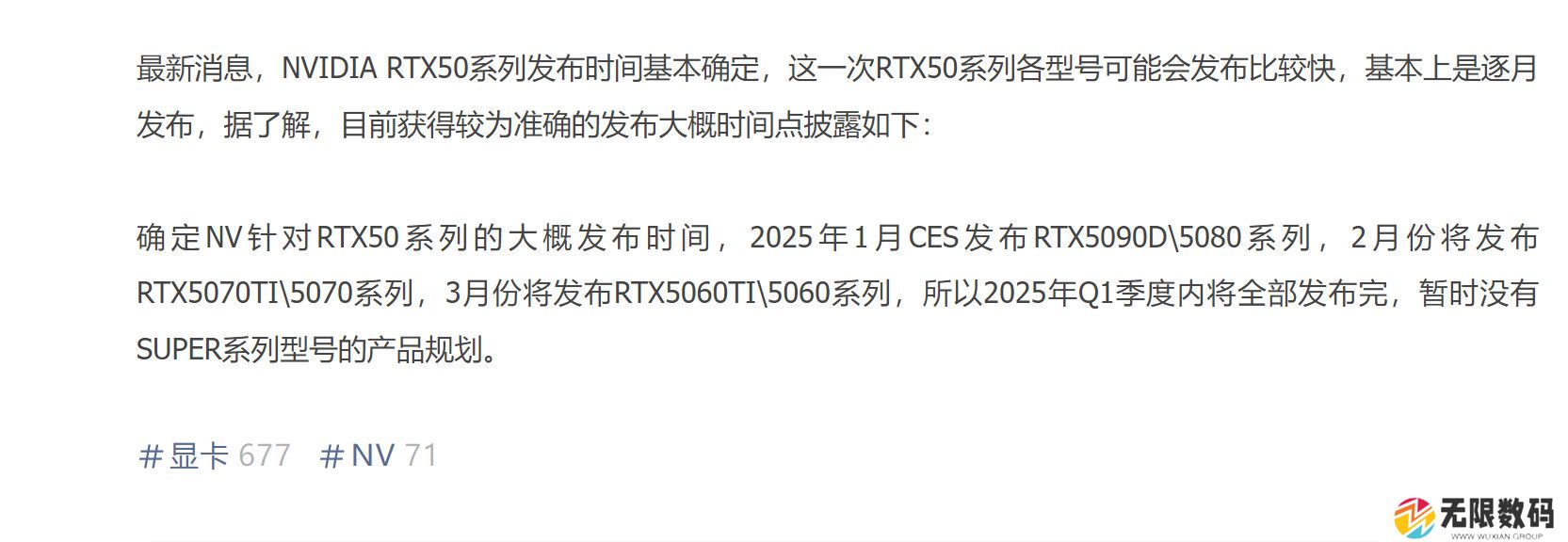 这意味着以上所有显卡都将在2025年第一季度发布,目前英伟达暂未准备Super系列。