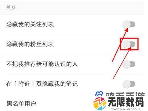 3、最后我们把关注列表和粉丝列表右侧的功能点击开启即可;