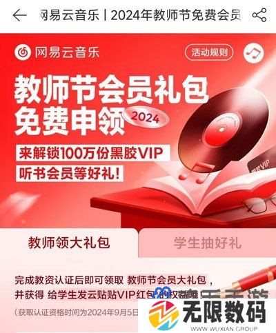 《网易云音乐》2024年教师节免费会员领取教程 领取时间领取方法