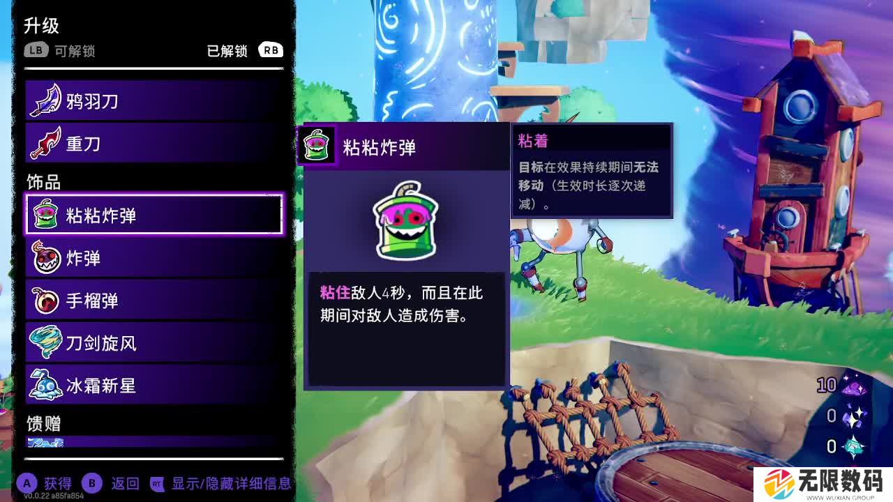 释放粘粘炸弹的时候粘住敌人4s,并且在此期间不断造成伤害,在面对比较灵活的boss或者群怪的时候比较好用。