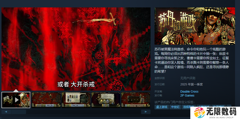 《苏丹的游戏》是一款由Double Cross制作的,卡牌模拟游戏,而这款游戏的官网地址就是Steam平台的购买页面和官方的一个游戏页面,进入到这个游戏的购买页面基本上就能知道所有这款游戏的信息。