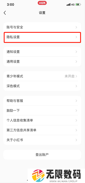 2、然后在设置功能中,找到隐私设置功能进入;