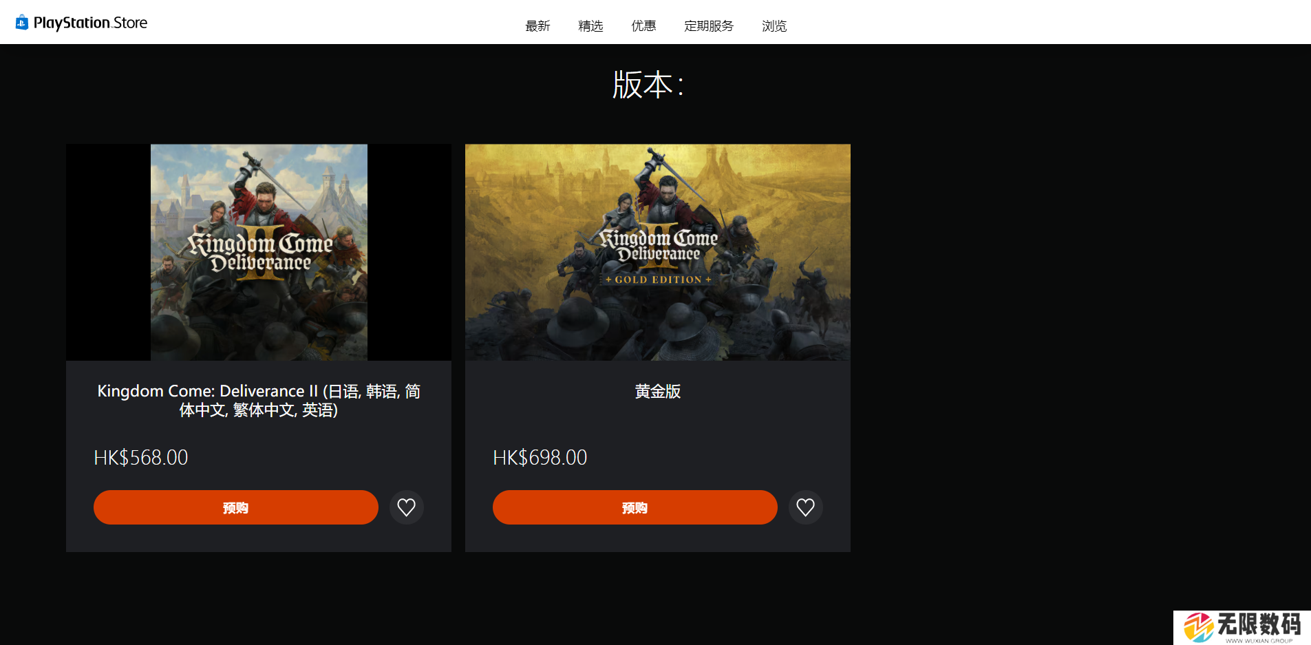 PS平台售价为568港币和698港币。