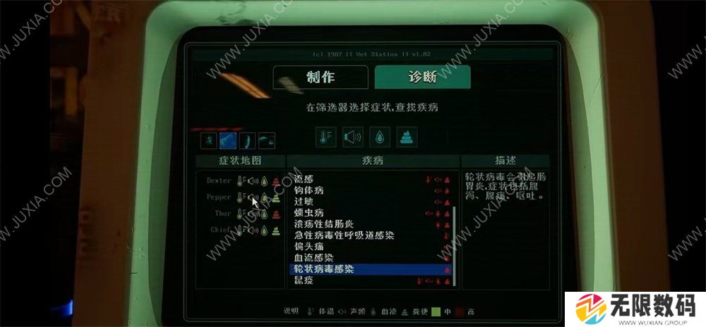 再者是游戏内指引很弱,很多时候玩家会不知道该干什么,比如动物很多的时候抽血与清理**物会非常麻烦。如果找不到哪只动物还没有抽血,那样就可能会卡关;然后如果你想要走一个比较好的结局,那么就不能击杀动物,如果不击杀动物,那就必须制作药物来治愈它们,而制药的这个过程也是非常缺乏指引,几乎要靠玩家们一点一点去尝试这个过程也是比较大折磨。