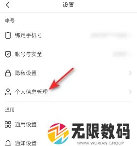 1、进入设置页面后,点击个人信息管理;