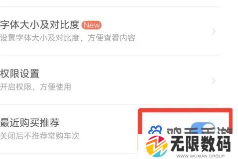 3、在设置页面下滑,找到最近购买推荐,将右侧功能选择关闭即可