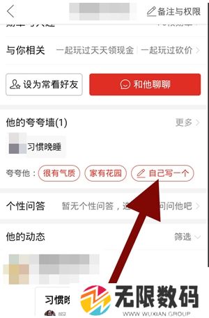 3、接着在夸夸墙页面,点击自己写一个;
