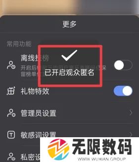 4、开启之后就会显示已开启观众匿名,在直播间将会隐藏观众的基本信息了;