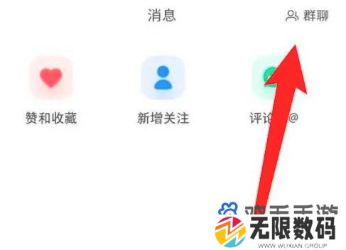 1、进入软件后,点击消息,选择右上角的群聊功能进入;