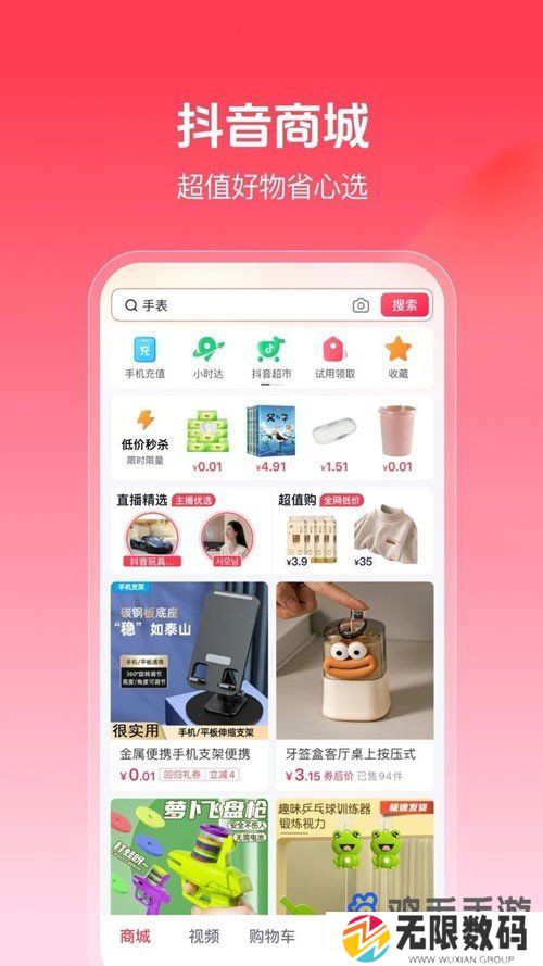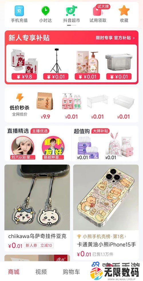 4、并且在商城版的主页,还加入了手机充值、小时达和抖音超市等功能;