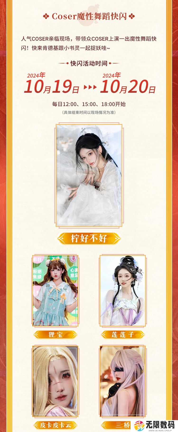 线下主题店快闪活动也准备就绪,美女coser和线下惊喜福利全部安排!2024年10月19日-10月20日,《长安幻想》将在天河万科肯德基主题店举办线下活动。人气COSER「柠好不好」亲临现场,与「狸宝」「莲莲子」「皮卡皮卡云」「三桥」等一众美女COSER上演魔性舞蹈快闪。此外,现场还准备了丰富的福利活动,长安幻想玩家及现场注册的玩家只需要出示区服及昵称信息就能免费获得一份联动套餐「长安幻想御灵能量套餐」,而且加入玩家社群并发布打卡内容就能获得一次转盘抽奖机会,奖品包含精美周边、联动套餐、肯德基代金券等,准备前往的小伙伴千万不要错过啦!
