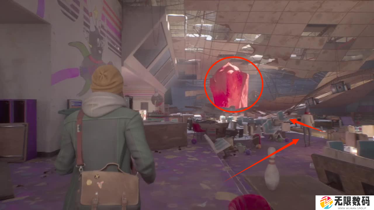 首先我们来到第一章,需要找到保龄球馆的焦点,我们再进去之后可以看见一个巨大的红色篷布,向前走到篷布那里就是任务点。