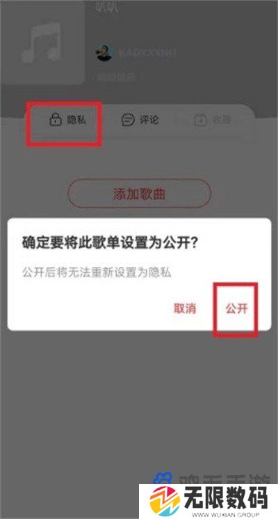 3、然后选择歌单的状态,点击将其设置为公开即可;