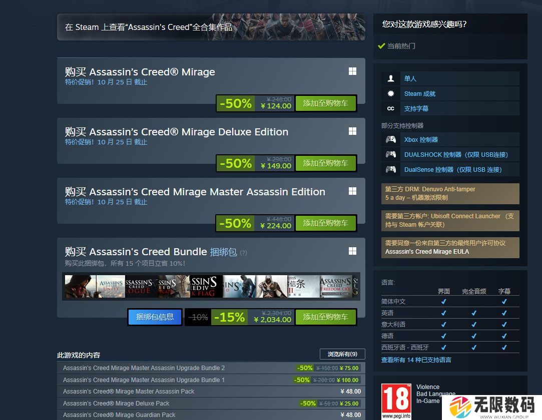 《刺客信条:幻景》Steam多半好评 “首发”半价124元
