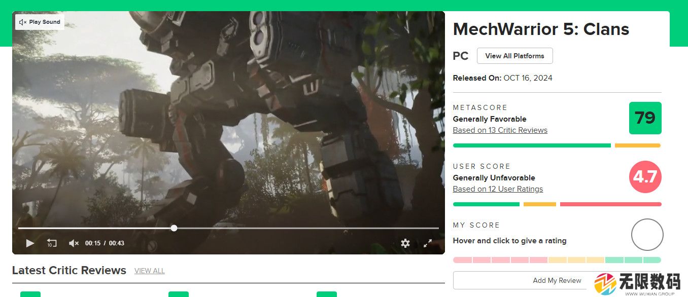 《机甲战士5:部族》IGN 8分,Metacritic PC版媒体评分79分,用户评分4.7分,Steam评价“多半好评”。