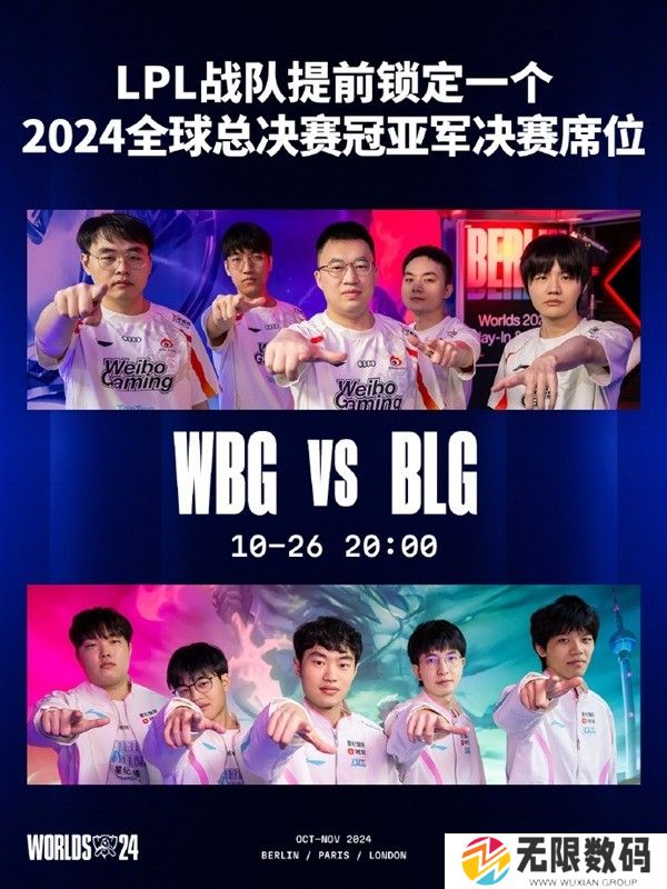 WBG与BLG获胜后,将于10月26日的2024全球总决赛淘汰赛半决赛相遇,这意味着LPL赛区战队提前锁定一个2024全球总决赛冠亚军决赛席位。