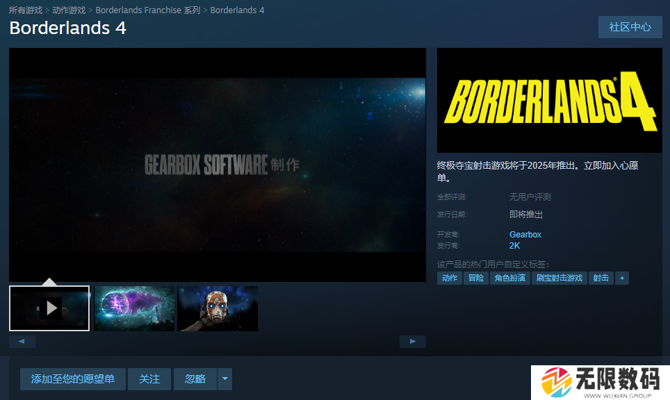 Steam平台购买链接:https://store.steampowered.com/app/1285190/Borderlands_4/
