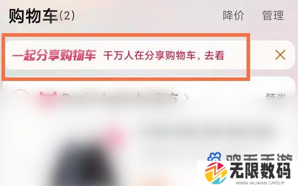 1、首先我们进入到购物车页面中,点击首页的一起分享购物车功能;