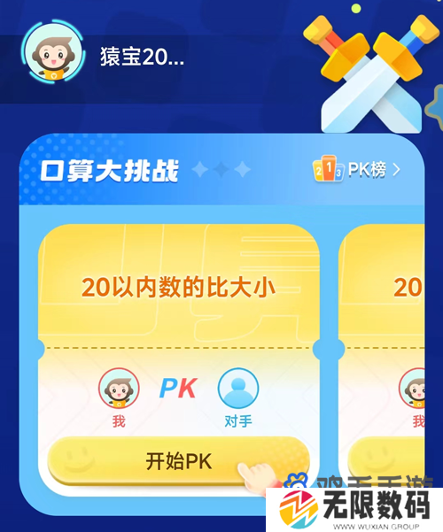 3、接着系统会根据我们的段位随机匹配对手,随后进入口算PK玩法。