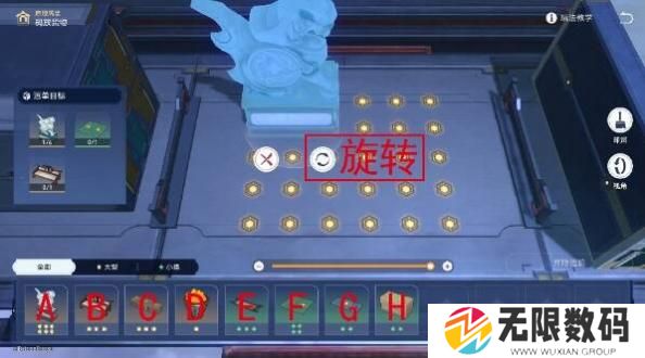 答案中字母为下方货物从左至右依次的字母编号,“旋转”为点按装载相应货物后,在场地中单击该货物显示出的右下方按钮。